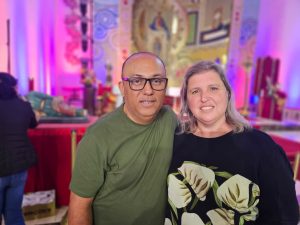 Após o intervalo, os fiéis se reuniram novamente para a programação. A família de Cleodenice e Sidney Silva veio de Maringá (PR), e tem a Festa como compromisso marcado na agenda todos os anos, desde a primeira edição. “Reparamos que está cada vez mais cheio, graças a Deus. Pessoas que, como nós, vêm motivadas pelas graças recebidas. Tivemos curas, livramento do desemprego, conquista da casa própria… bênçãos inesquecíveis dessa devoção maravilhosa”, contaram, além de destacarem quão emocionados ficaram na Via-Sacra de sábado (27).