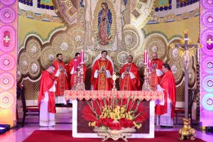 O encerramento da X Festa de Jesus das Santas Chagas se deu com a Celebração Eucarística presidida pelo Padre Reginaldo Manzotti. Durante a homilia, o Sacerdote destacou a semana vivida com muito fervor pelos fiéis. “Filhos e filhas, é um processo que estamos vivendo desde segunda-feira. A Festa de Jesus das Santas Chagas tem a missão de proclamar aquilo que não é nosso, mas a história do ato redentor do Senhor Jesus, na sua Paixão, Morte e Ressurreição. Ontem era impressionante aquele mar de gente contemplando as Chagas Dolorosas na Via-Sacra, e hoje, milhares de pessoas passaram o dia refletindo sobre as Chagas Gloriosas. São duas realidades de uma mesma redenção”, afirmou.