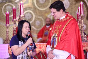 Alessandra deu seu testemunho na Missa de encerramento da Festa. Foto: Felipe Gusso
