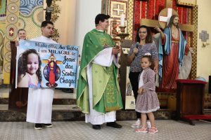 Os fiéis foram encorajados a fazer da X Festa de Jesus das Santas Chagas um momento de reflexão e mudança interior. A partir do Evangelho de Lucas (8,16-18), a homilia de Padre Reginaldo lembrou que não somos luz, mas sim o reflexo da claridade do Senhor. “Somos convidados a ver o que há de trevas em nós. Todos temos uma ‘gaveta da bagunça’ em si. Gostaríamos que tivéssemos a coragem de abri-las e levar a luz, que é Jesus nas Suas Santas Chagas, onde tem sombra”, afirmou, e incentivou que a luz d’Ele deve brilhar em nós e por meio de nós.